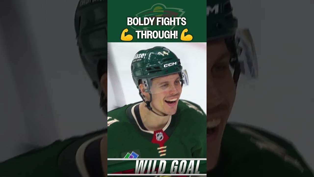 Minnesota Wild forward Matt Boldy MUSCLES his way through the Dallas defense, setting up the game-tying goal from Joel Eriksson